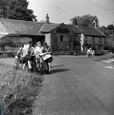 William Wild (1904-1983) : Bill Wild was the Malham village blacksmith from about 1946 until his death in 1985 and an authority on the natural history of the area. He was also a master craftsman and artist, working in many different mediums, such as wood carving, wrought ironwork; beaten and chased copper work and wood engraving; his work was widely acclaimed not only locally but as far afield as America. He was also a fine watercolour artist and a clever cartoonist and satirist, and famed for his rams' horn walking sticks, the horns usually carved in the form of animals. The local history group archive holds a good collection of his prints and correspondence. |