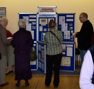 The exhibition was opened for members and invited guests on the Friday evening and ex-chairman Mike Spence gave a short talk on the history of the Group. Saturday morning saw the first arrivals just as the signs were being put out, and over the weekend many researchers availed themselves of the Parish Records, Census and Tax Survey records that were available. There was plenty of material of more general interest too, and the slide show of 100 images selected from the archive proved particularly popular. New photographs and documents were brought in and scanned for inclusion in our digital archive with offers of more to come and we have already been busy recording the last of the records from Airton Wesleyan Chapel before it is stripped and sold for development.